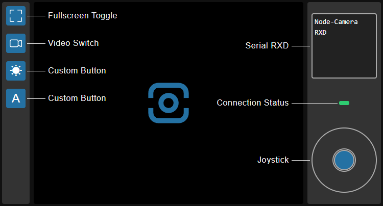"cmd"- The button sends a command, configured via the subsequent on/off attributes."txd"- The button transmits a string to the Node-Camera serial port (UART TXD) output through WebSocket. This action requires enabling the UART Socket in the Features tab. The string to be sent is configsetured in the subsequent on/off attributes.